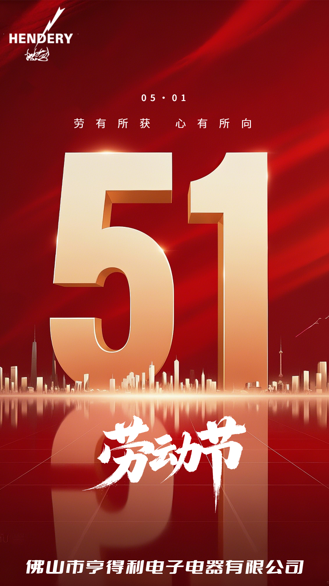 值此五一国际劳动节,佛山市亨得利电子电器有限公司再次向所有辛勤工作的劳动者致以最诚挚的祝福,愿大家在这特别的日子里享受到劳动的快乐与成就感,愿我们的社会因每一位劳动者的努力而更加美好!